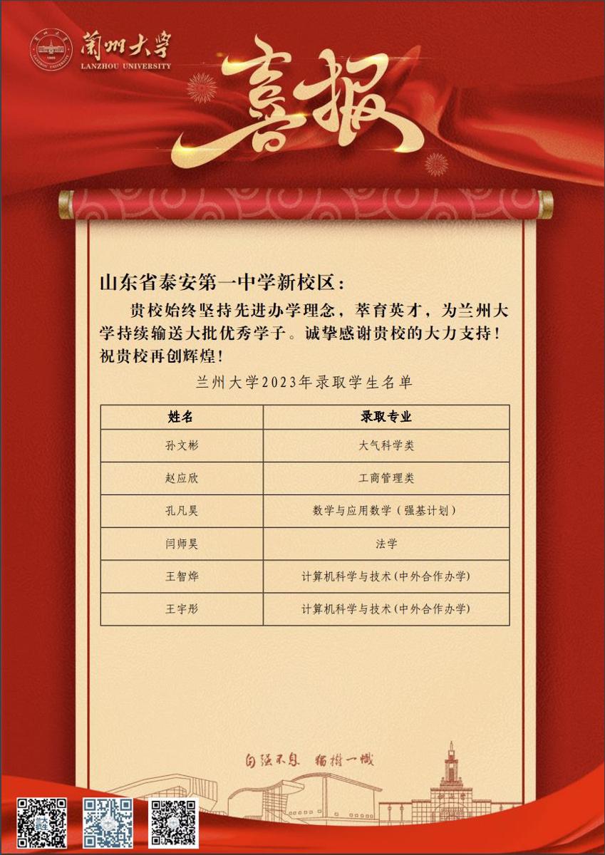 中国科学技术大学向泰安一中发来喜报