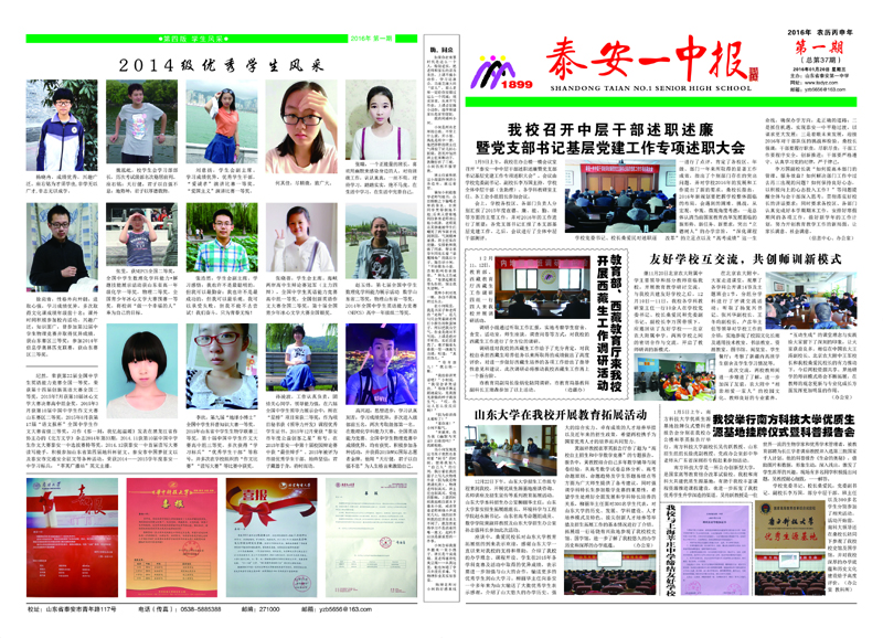 泰安一中校报(2016年第一期)
