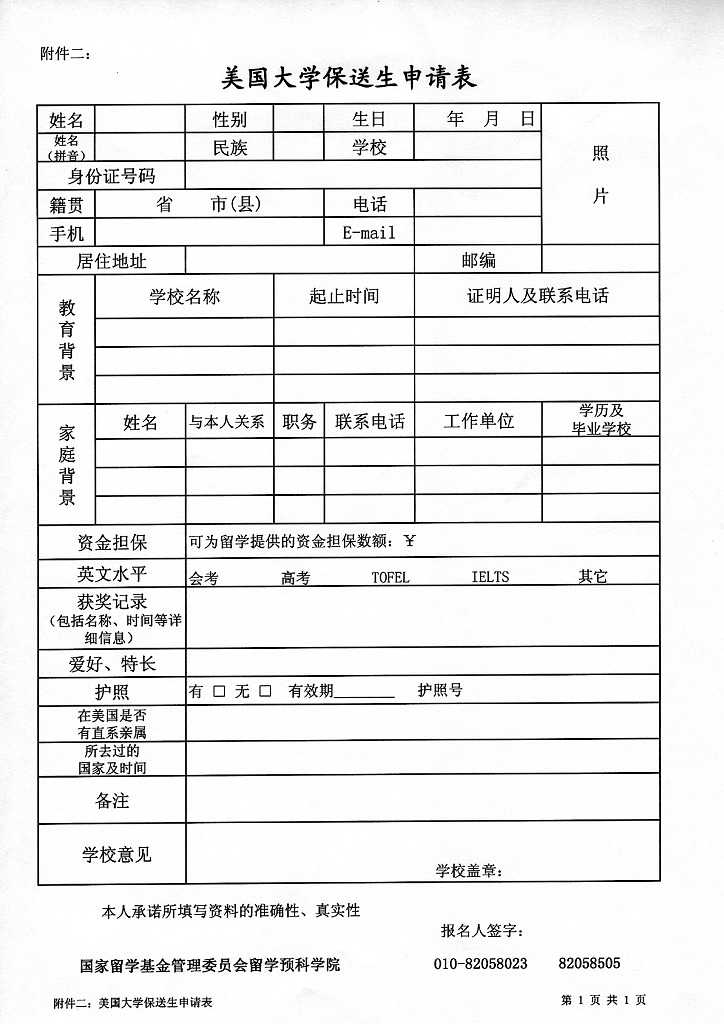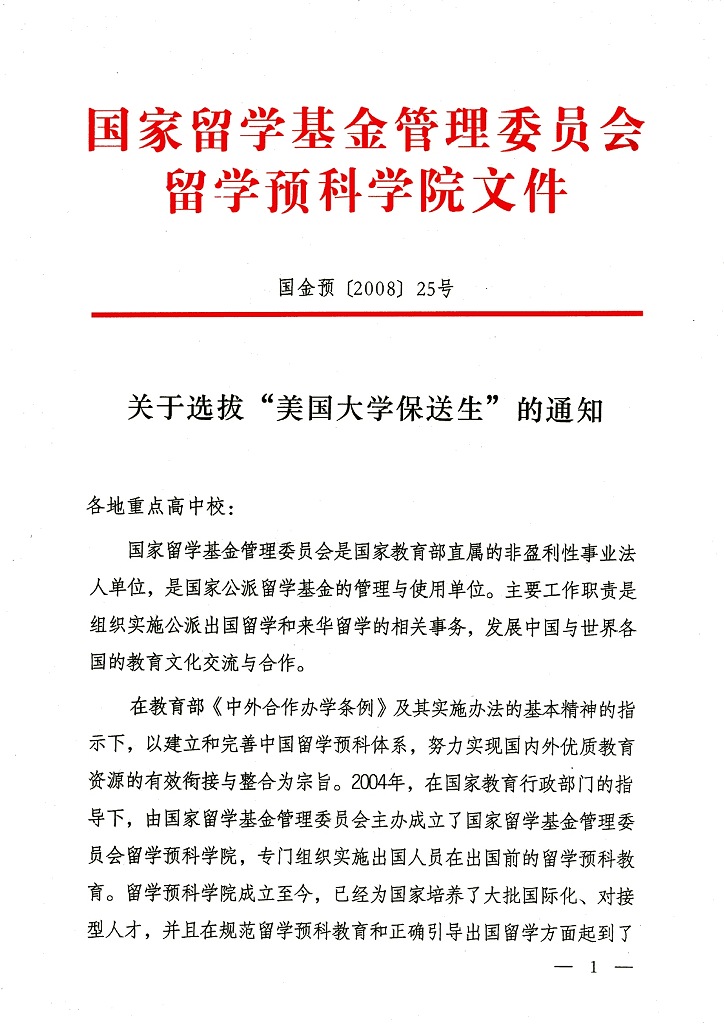 关于选拔“美国大学保送生”的通知