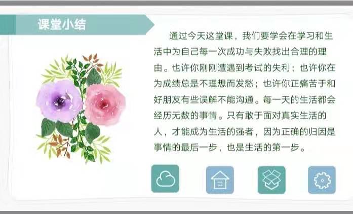 学生对自己的归因方式不仅反映着他们寻找学习结果的倾向,而且还会影响到学生的学习动机,甚至影响到其人格特点。因此,2021年4月12日泰安一中青年路2019级部各班开展了一节别开生面的心理健康主题班会课——《合理归因益身心 阳光心态利成长》,帮助学生了解自己的归因类型,引导他们对自己学习成绩、人际交往等进行合理的归因,有效地激发了学生的学习积极性、学习动力,有助于培养学生良好的人格特征。